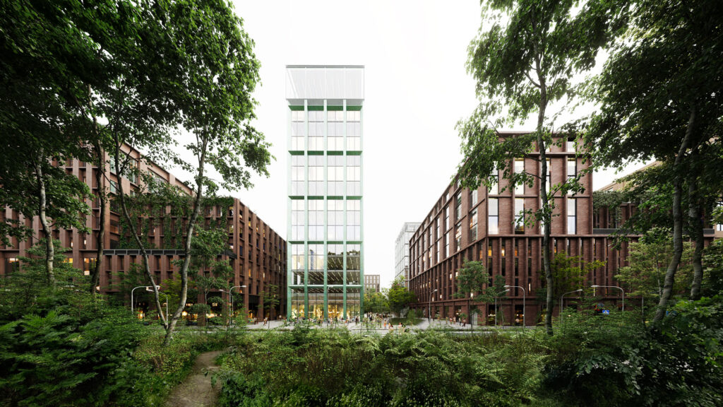 Der Rückbau des Bestandsgebäudes startet Ende 2025, die Fertigstellung des Quartiers ist bis 2030 geplant.