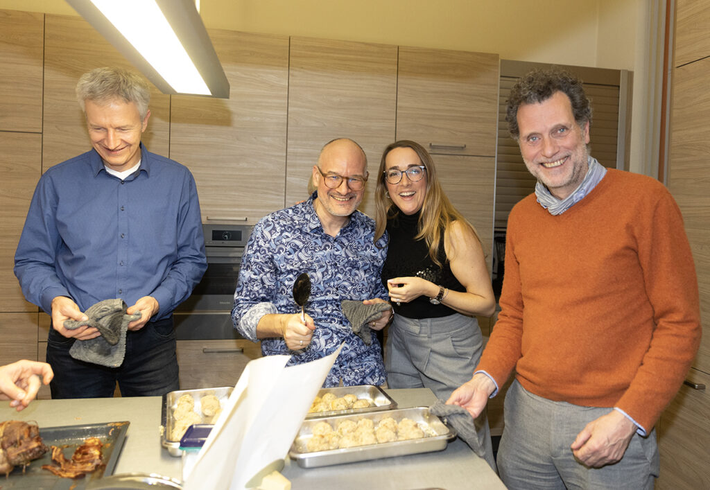 In guter Gesellschaft gemeinsam kochen, essen, das Jahr Revue passieren lassen - das war die Idee hinter dem Weihnachtsumtrunk der drei Netzwerke Großbeerenstraße, Moabit und Technologiepark Humboldthain. Gekommen waren 25 Mitglieder aus verschiedenen Arbeitskreisen, die ein anspruchsvolles Menü zubereiteten: von lauwarmer Entenbrust auf Rapunzel-Rote-Bete-Mango-Salat über Rehkeule in Brombeer-Brandy-Schokoladensoße bis hin zur Glühweincreme mit Mascarpone. Die offene Küche bot dabei viel Raum für Gespräche - über das in 2025 Erreichte, aber auch über die Pläne für das nächste Jahr. Besonders gefreut haben wir uns über den Besuch der Wirtschaftsförderung des Bezirks Tempelhof-Schöneberg.